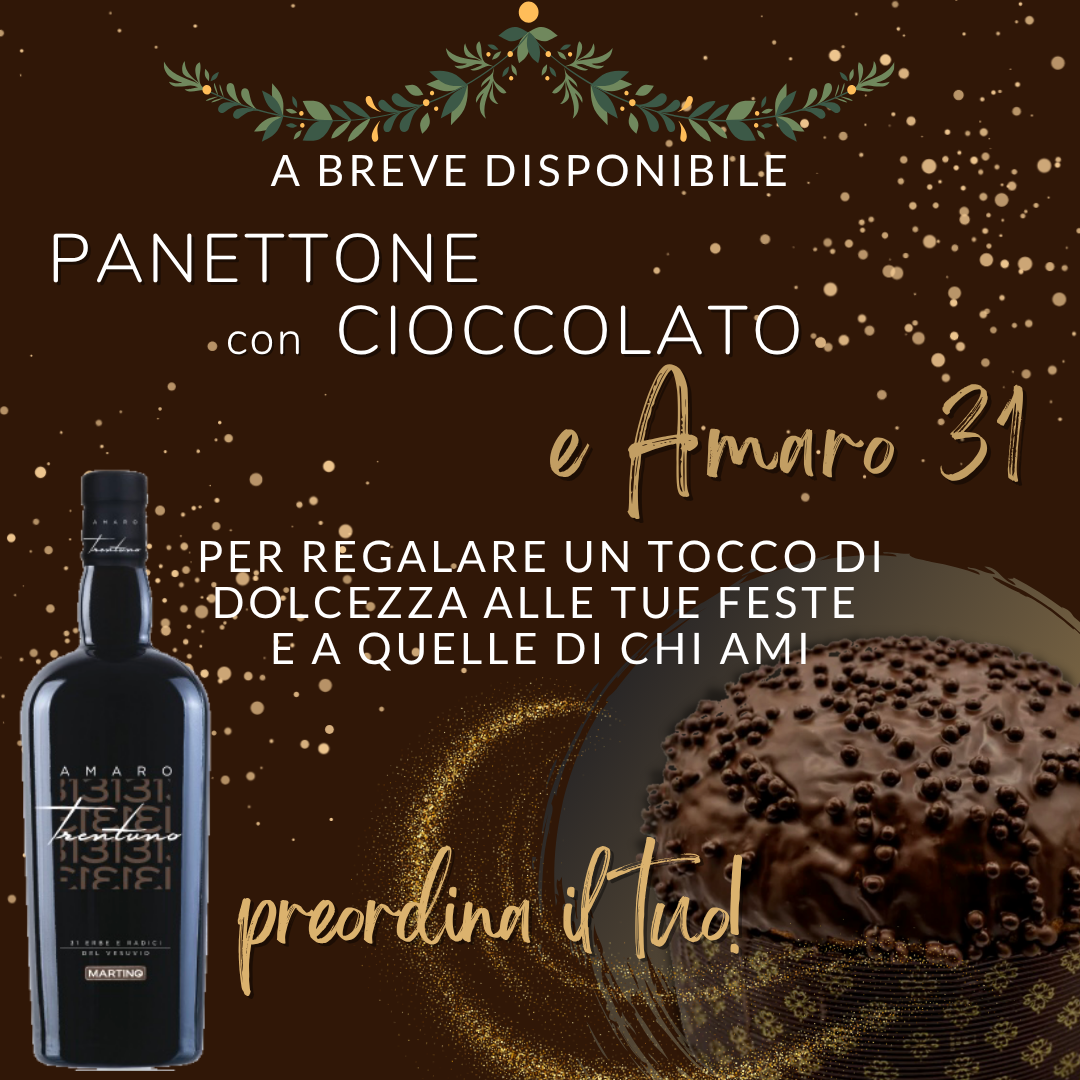 Scopri l'edizione natalizia esclusiva: un panettone soffice e profumato, arricchito dal gusto unico dell'Amaro 31 e dal cioccolato fondente. Un dolce speciale da condividere o regalare, disponibile in pre-ordine fino al 30 novembre ad un prezzo speciale.